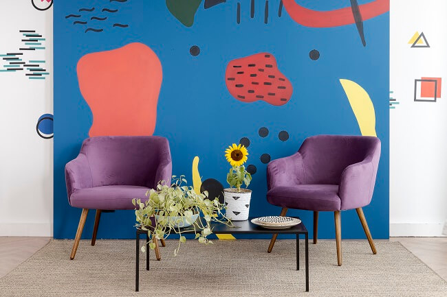 Para as paredes, temos uma dica especial: pinturas orgânicas! Essa é uma tendência artística bastante criativa que usa tintas, formas e texturas para transformar os espaços. A ideia é exprimir a personalidade dos moradores da casa por meio das pinceladas de tinta. Vale fazer formatos abstratos ou desenhos mais elaborados, como ramos de folhas.