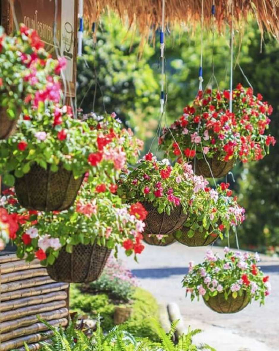 10. Planta ornamental plantada em vasos suspensos de canto.