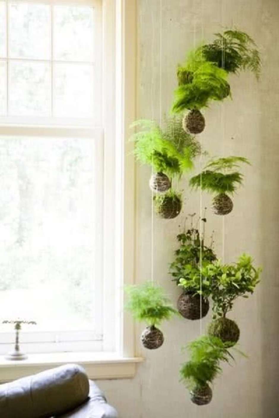 46. As kokedamas são alternativas de suporte para vaso de planta suspenso.