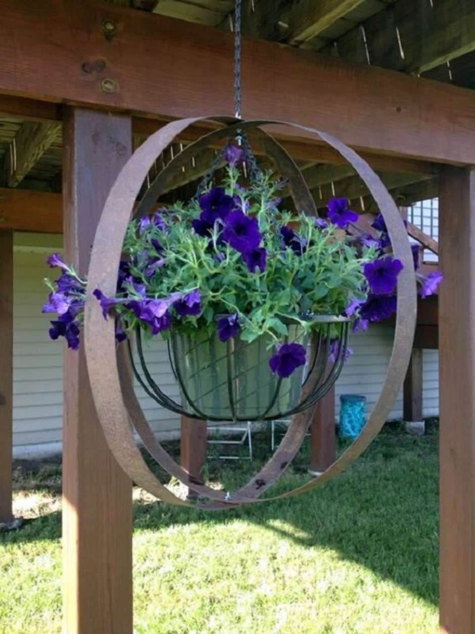 37. Estrutura criativa acomoda vasos para jardim suspenso.
