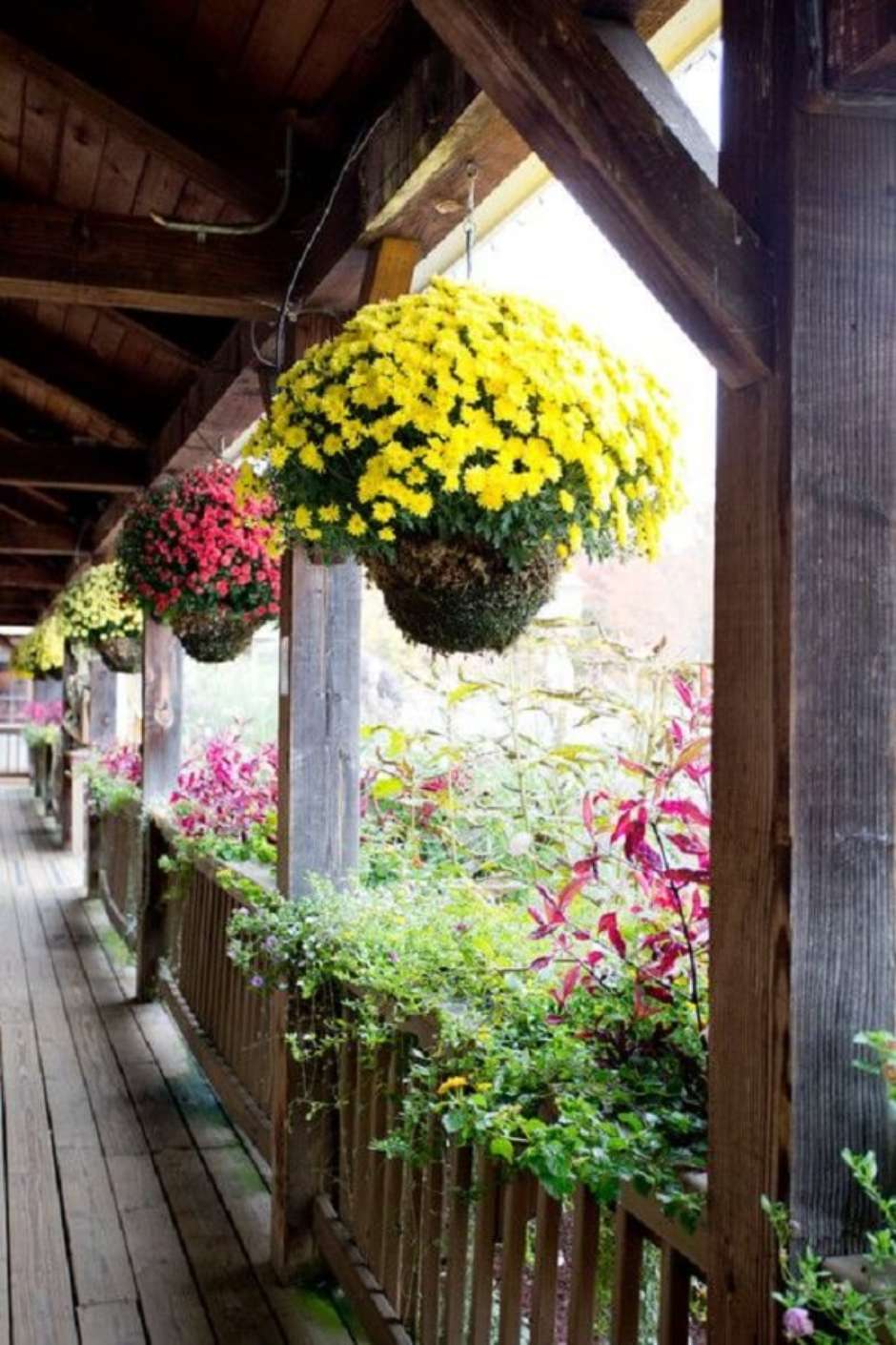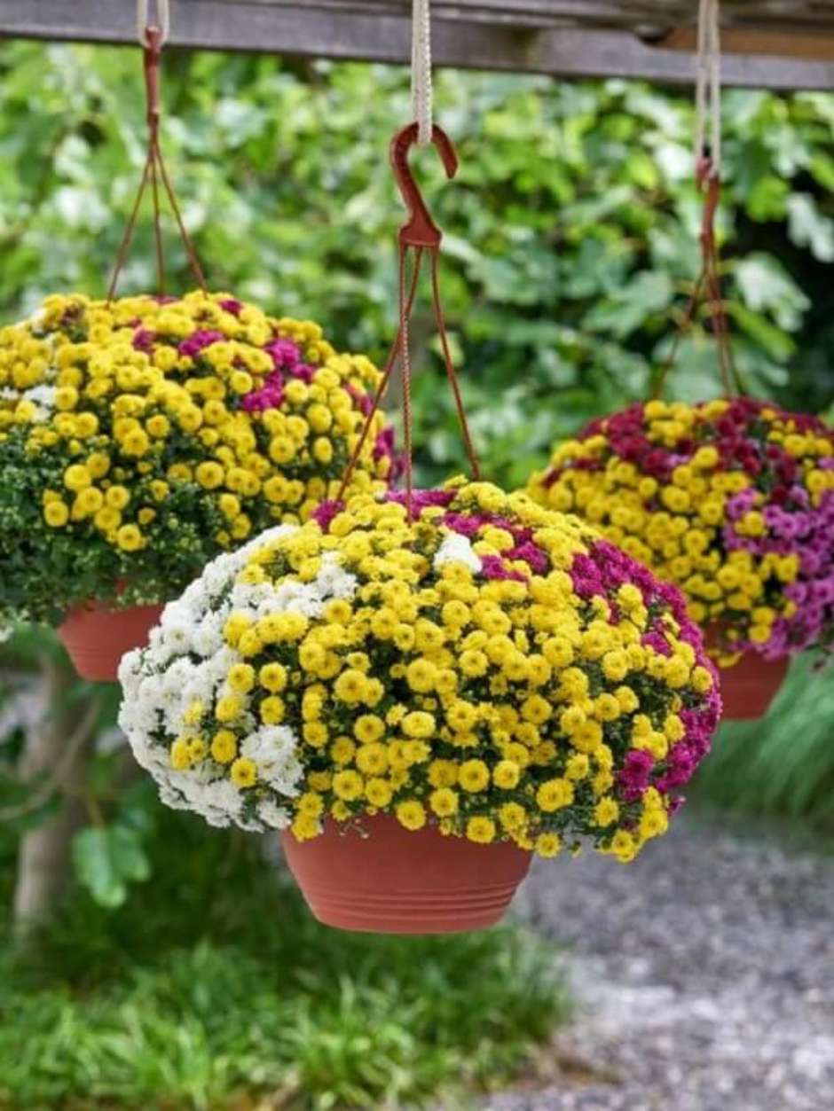 27. Mescle tonalidades de flores para vasos suspensos.