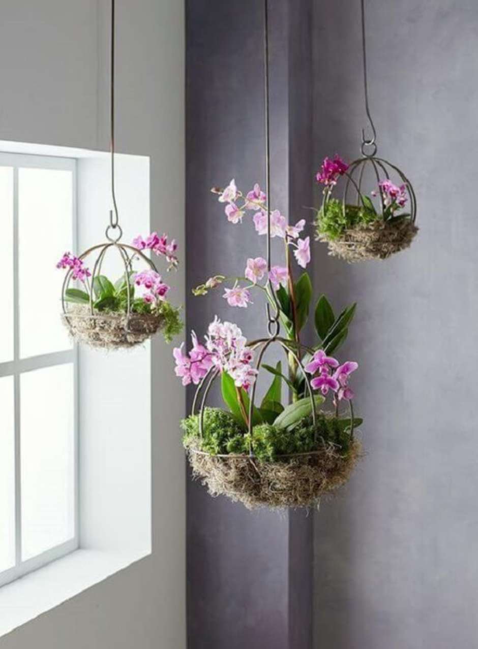 Já para aqueles que buscam trazer ainda mais delicadeza e romantismo para a decoração uma ótima dica é realizar o cultivo de mini orquídeas em vaso suspenso.