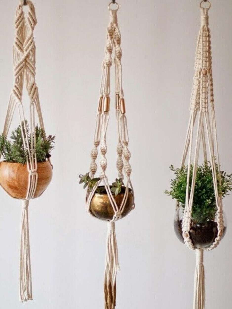 13. Suporte para vaso de planta suspenso feitos de macramê.