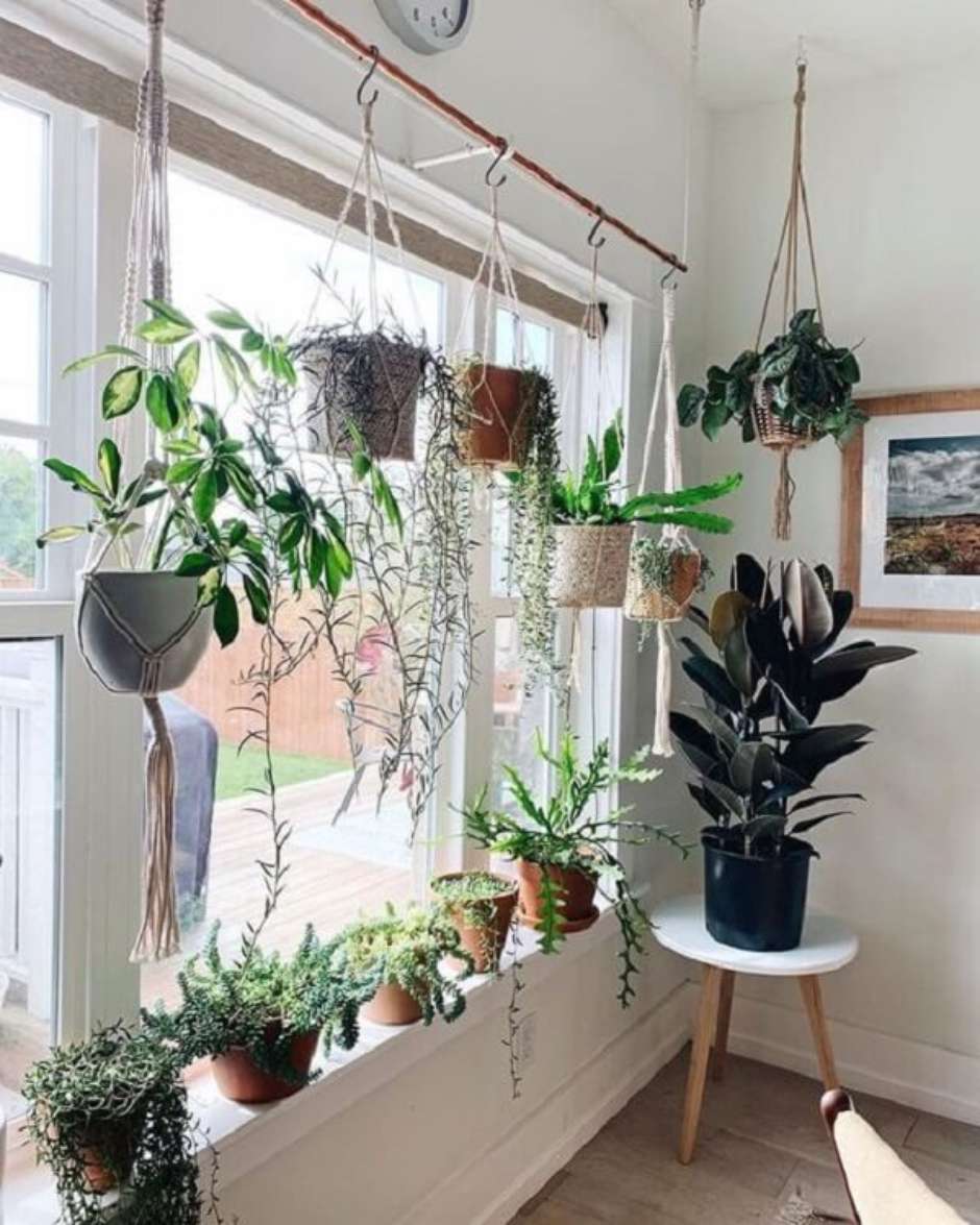 18. Os vasos suspensos para plantas pendentes criam um efeito lindo em janelas.