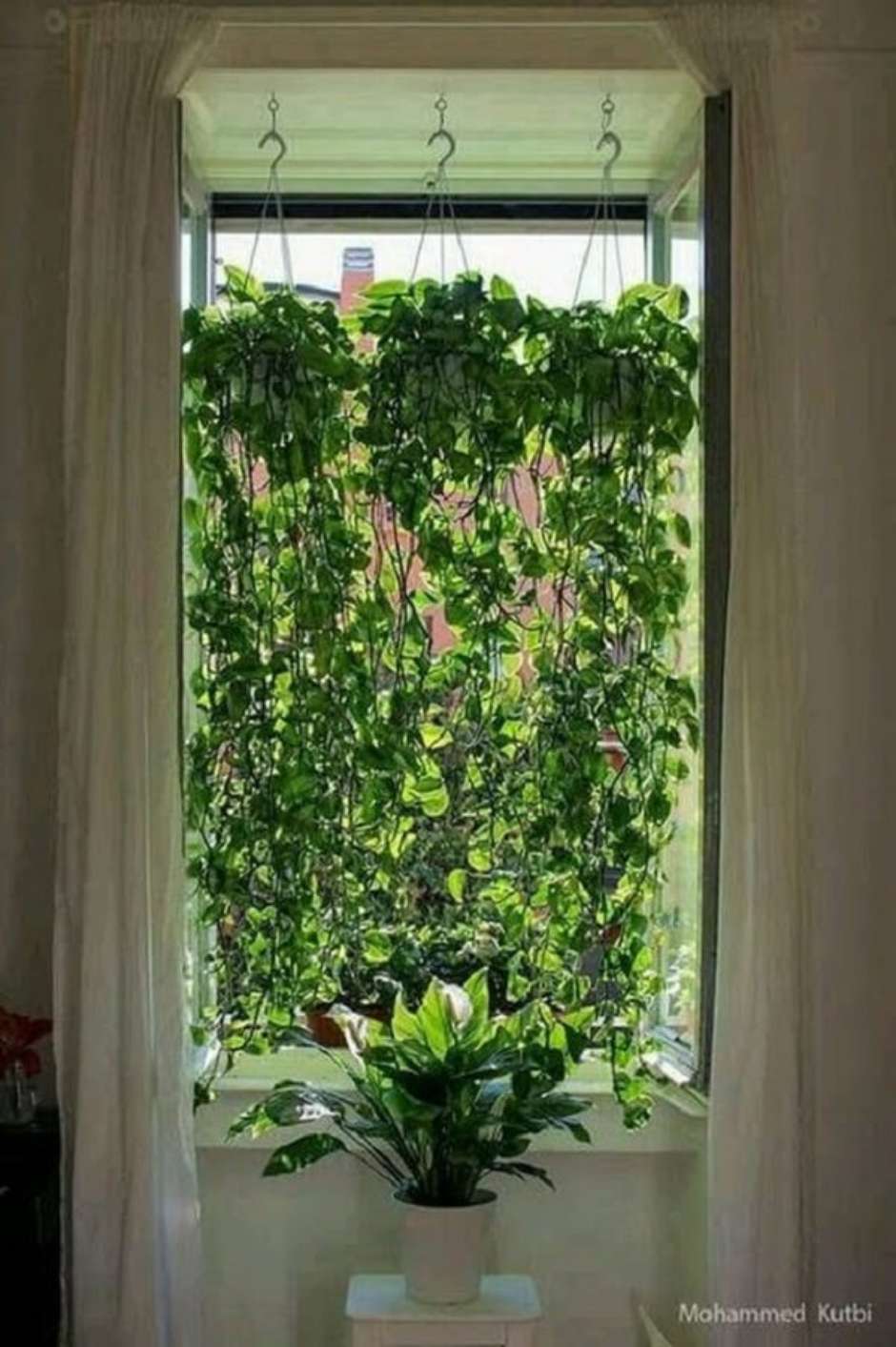 31. Os vasos para jardim suspenso foram fixados próximos à janela.