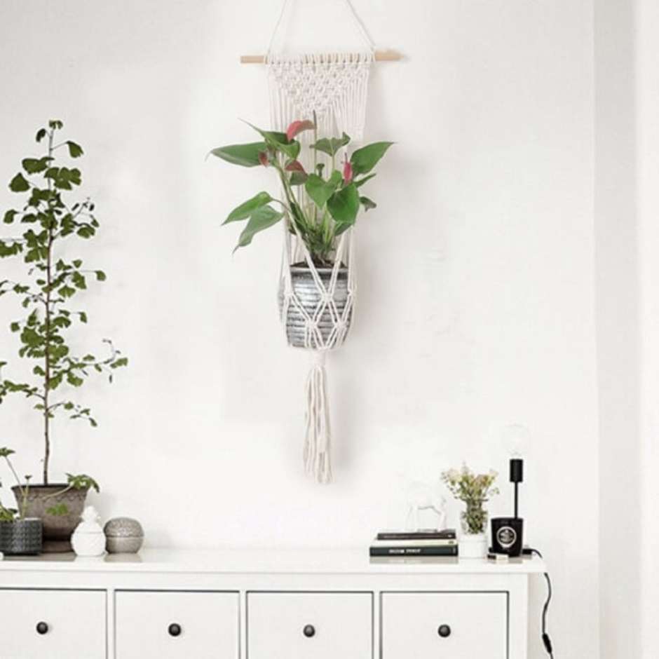 24. O suporte para vaso suspenso em macramê compõe um jardim suspenso estilo Boho.