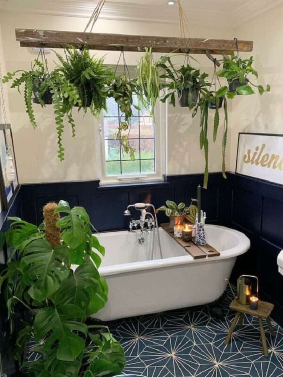 14. Se seu banheiro for iluminado a planta ornamental plantada em vasos suspensos irá crescer de forma saudável.